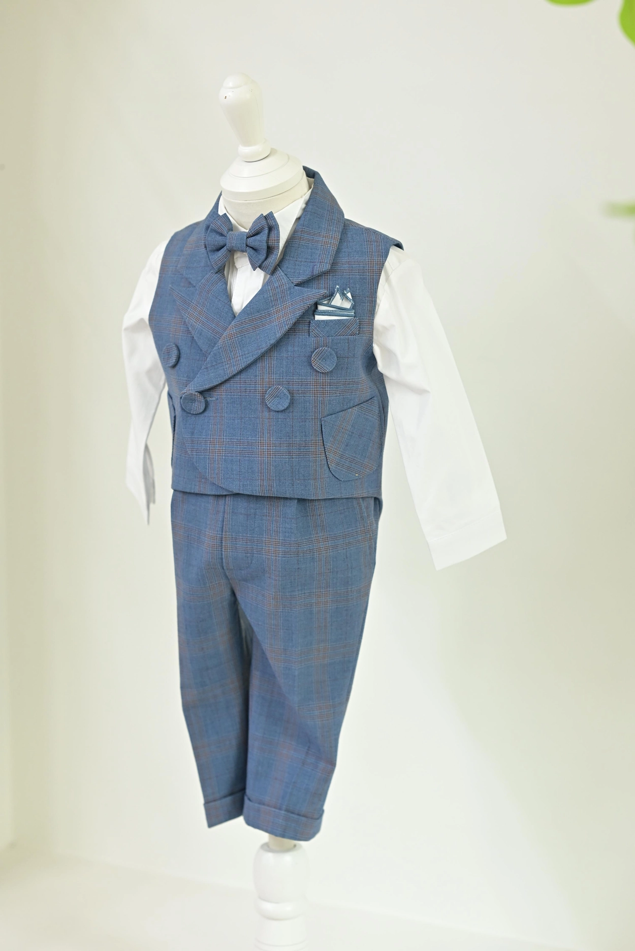 블루 체크 베스트 수트 80