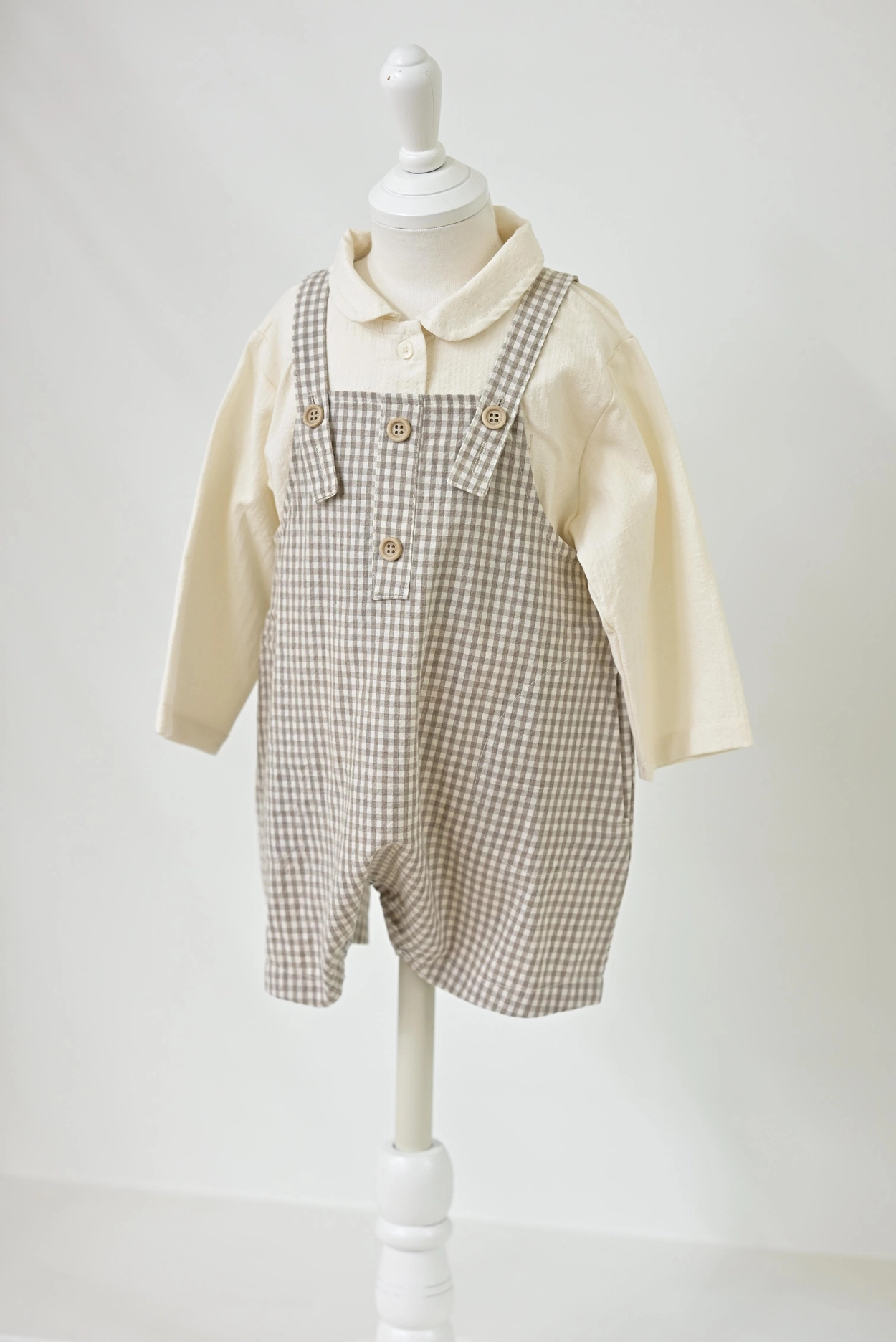 베이지 체크 오버롤