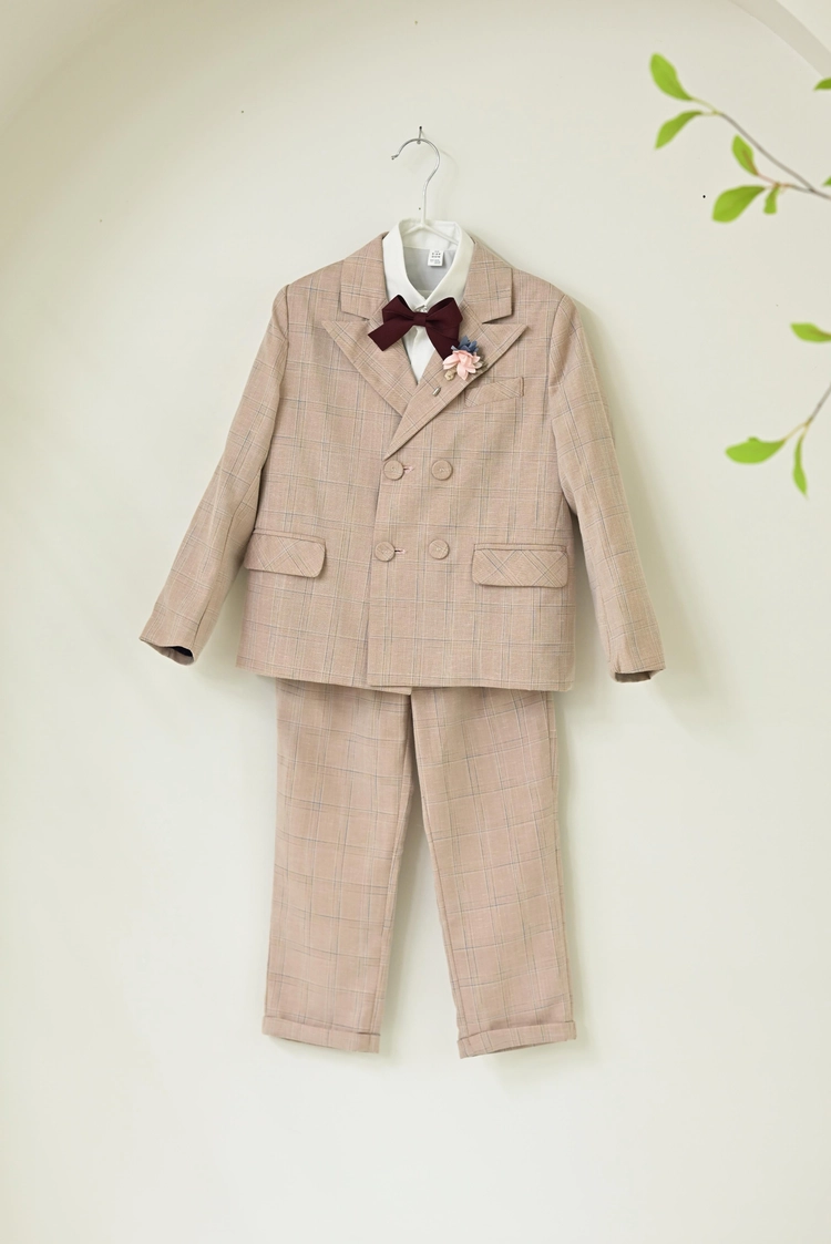 베이지 체크 더블수트 110, 120, 130