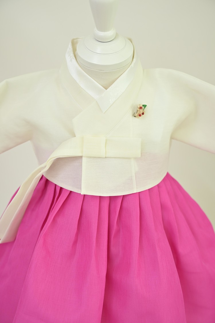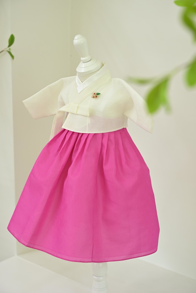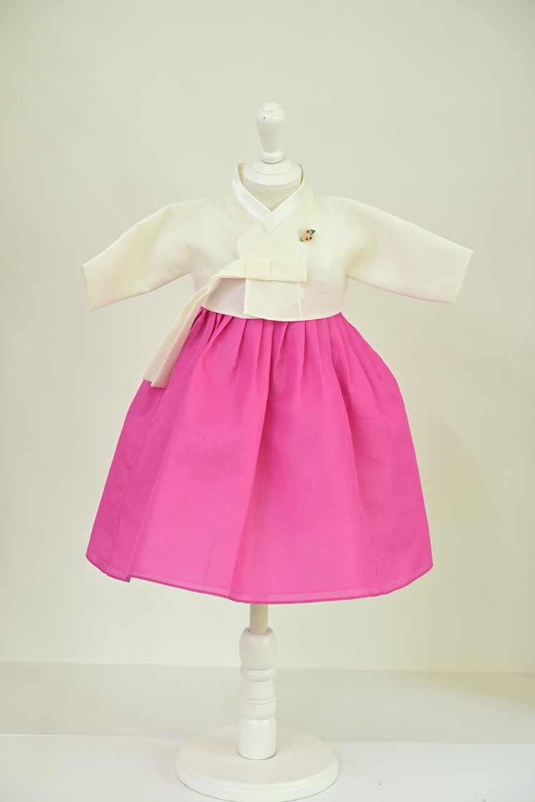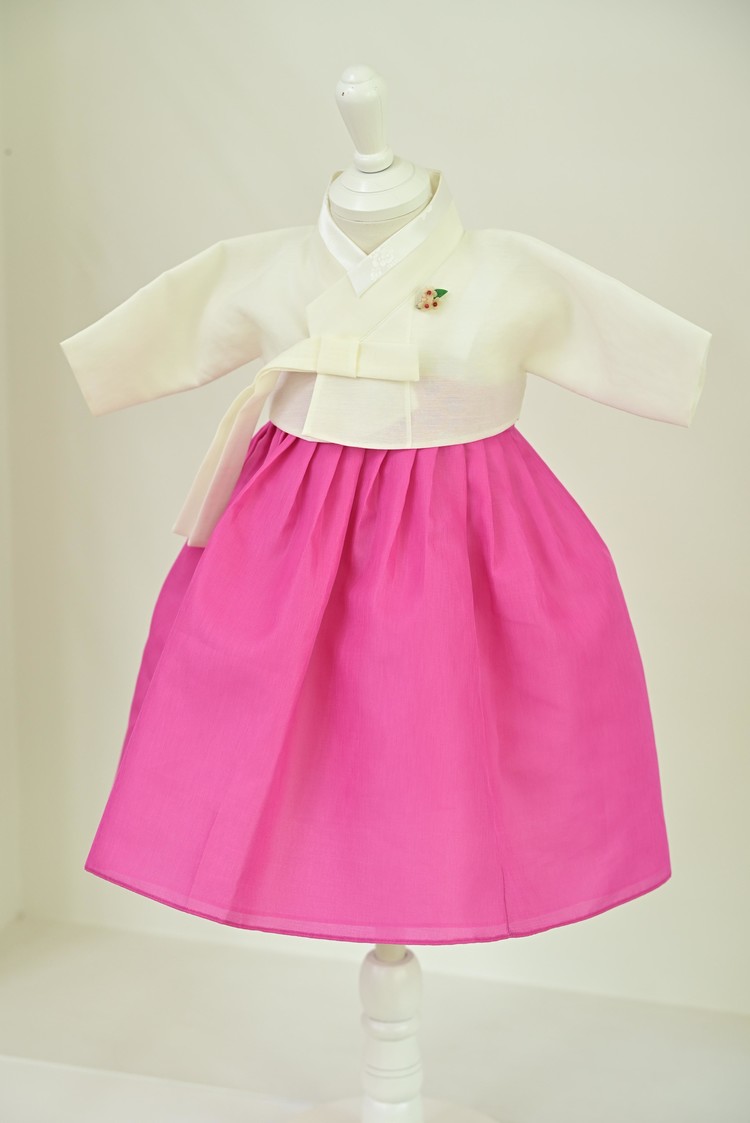 백저고리 꽃분홍 한복 (백일)